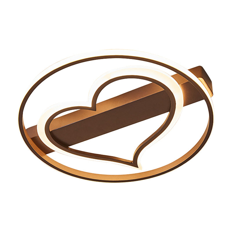 Ring Ceiling Lamp With Loving Heart Design And Acrylic Finish - Coffee/White Led Flushmount Lighting