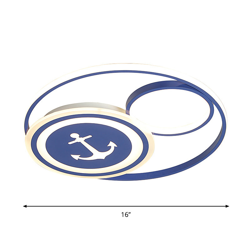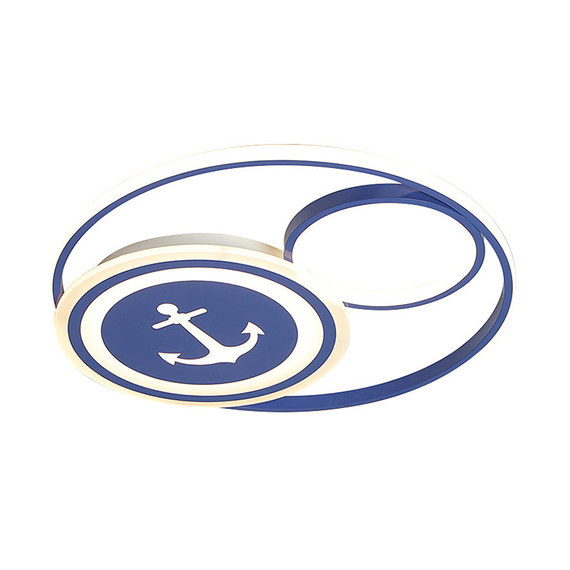 Blue Anchor Pattern Led Flush Light - Round Mediterranean Acrylic Ceiling Fixture