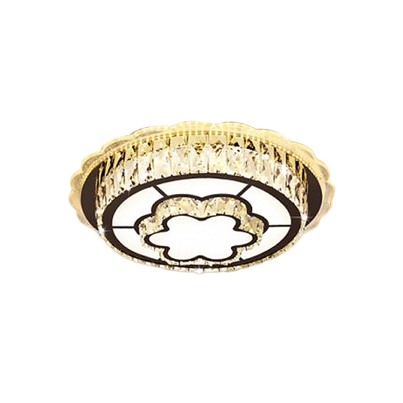 Modern Round Crystal Ceiling Lamp With Stainless-Steel Led Flush Mount Lighting And Heart/Flower
