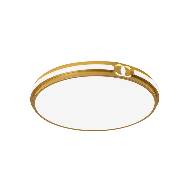 Diese moderne Deckenleuchte mit rundem Schirm ist die perfekte Ergänzung für Ihr Schlafzimmer. Sie verfügt über eine schwarz-goldene LED-Deckenleuchte, die warmes oder kühles Licht spendet – die perfekte Wahl für ein gemütliches und einladendes Schlafzimmer. Das Design ist modern-minimalistisch und passt zu jeder Einrichtung. Die Leuchte besteht aus Metall und verfügt über einen Acrylschirm in zwei Größen – 41,9 cm/52,1 cm breit – und einer festen Höhe von 7,6 cm.