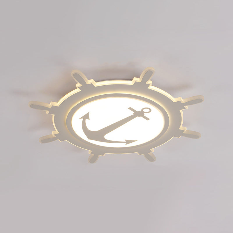 Rudder Shaped Led Flush Ceiling Light For Kindergarten - Simple & Stylish White Acrylic Mount