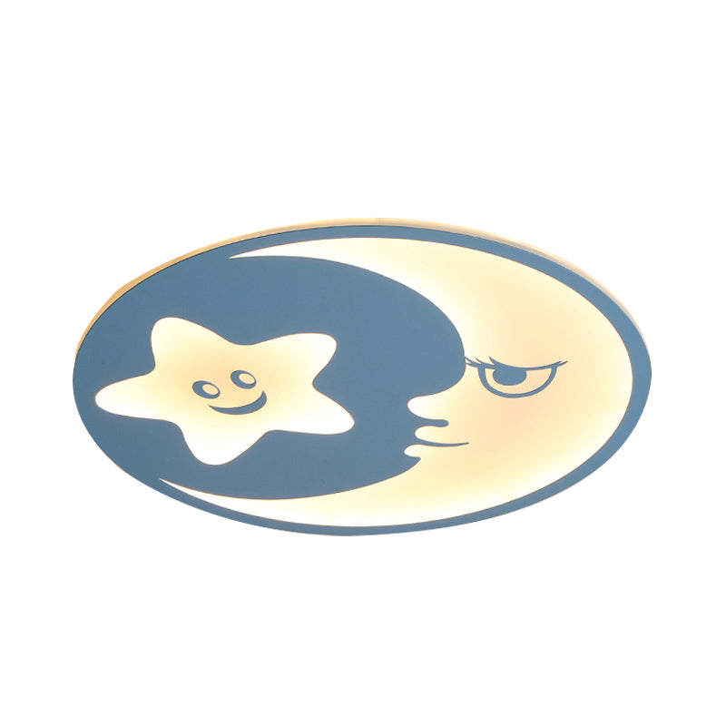 Childs Bedroom Blue Led Acrylic Ceiling Light With Smiling Moon & Stars / White