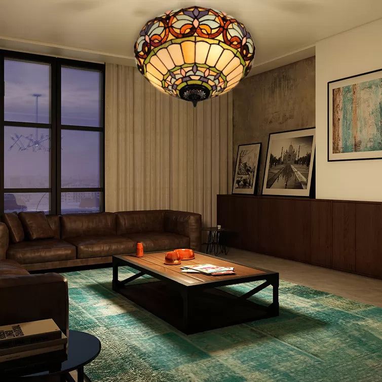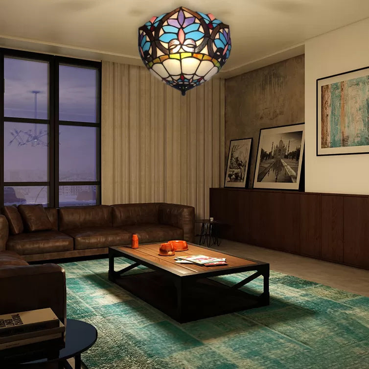 Diese wunderschöne Deckenleuchte im Tiffany-Stil ist die perfekte Ergänzung für jeden Raum und verleiht ihm einen Hauch von Eleganz und Schönheit. Die Leuchte verfügt über zwei Leuchten mit jeweils 40 x 30 cm Breite und 21,6 x 20,3 cm Höhe. Die Leuchte ist aus robustem, gefärbtem Glas gefertigt, das einen wunderschönen Blauton erzeugt und die filigranen Details und subtilen Farben des Designs hervorhebt. Die Spannung der Leuchte beträgt 110–120 V, 220–240 V. Das mitgelieferte Leuchtmittel ist vom Typ E26/E27 und somit mit LED-, Glüh- und Leuchtstofflampen kompatibel. Die Leuchte ist als Unterputzleuchte konzipiert und eignet sich daher ideal für kleinere Räume, da nur minimaler Abstand zwischen Decke und Leuchte besteht. Das viktorianische Design der Leuchte passt perfekt in jedes Wohn- oder Schlafzimmer und sorgt garantiert für Gesprächsstoff. Diese Deckenleuchte verleiht jedem Raum Stil, Eleganz und Schönheit und wird Sie über Jahre hinweg begeistern.