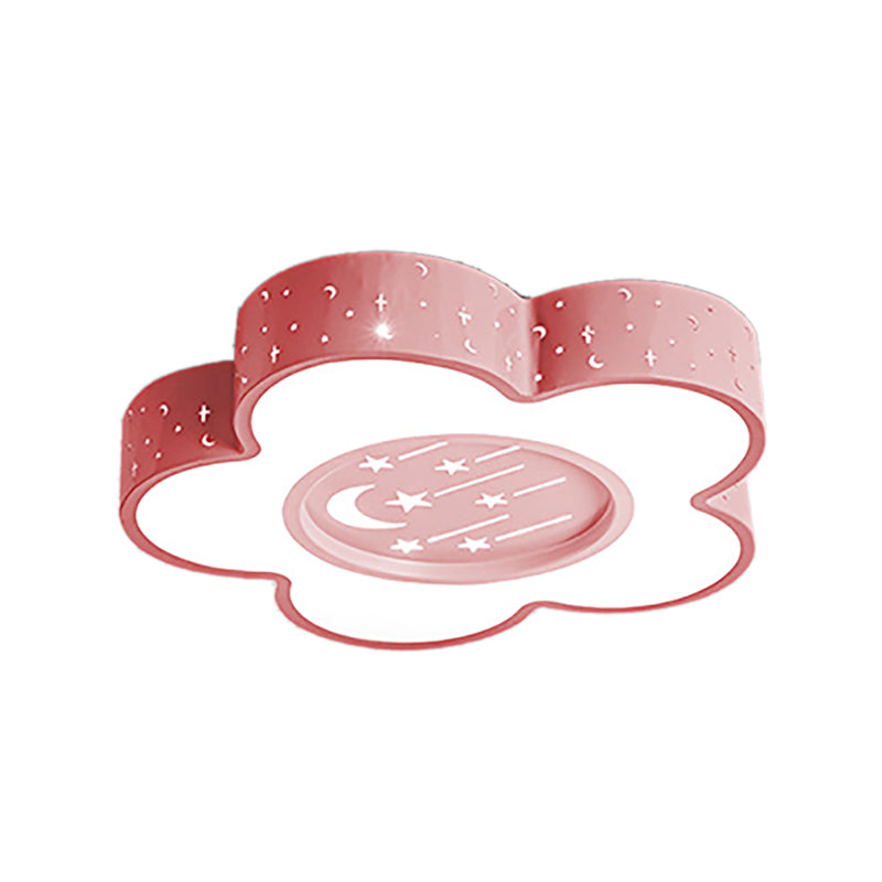 Childrens Hollow Flower Led Ceiling Mount Light With Moon And Star Cartoon Design Pink