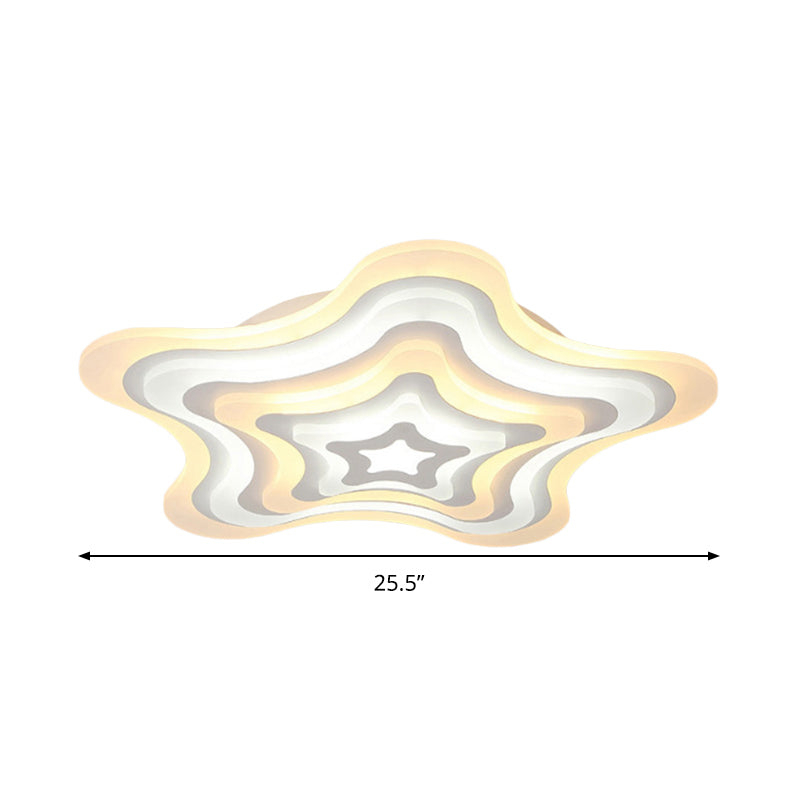 Contemporary Acrylic White Led Flush Mount Ceiling Lamp - Wavy Star Shape Remote Controlled