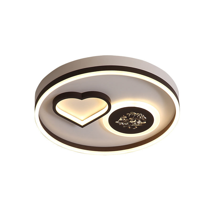 Modern Metal Led Round Flush Light In White/Brown For Living Room Ceiling - Warm/White Indoor