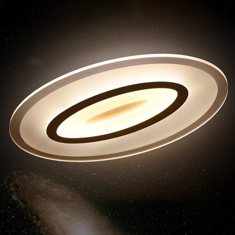 Minimalist White Oval Flush Mount Led Fixture For Living Room Lighting / 23 Warm