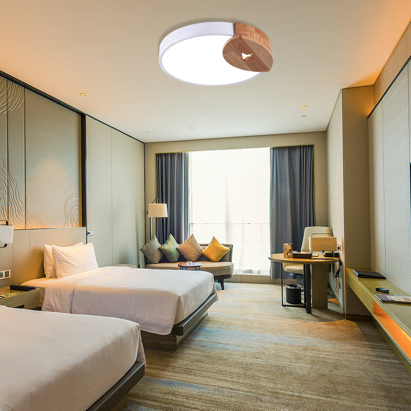 Runde LED-Deckenleuchte aus Acryl mit Holzschutz – 9"/12"/20" Durchmesser, warmes/weißes Licht