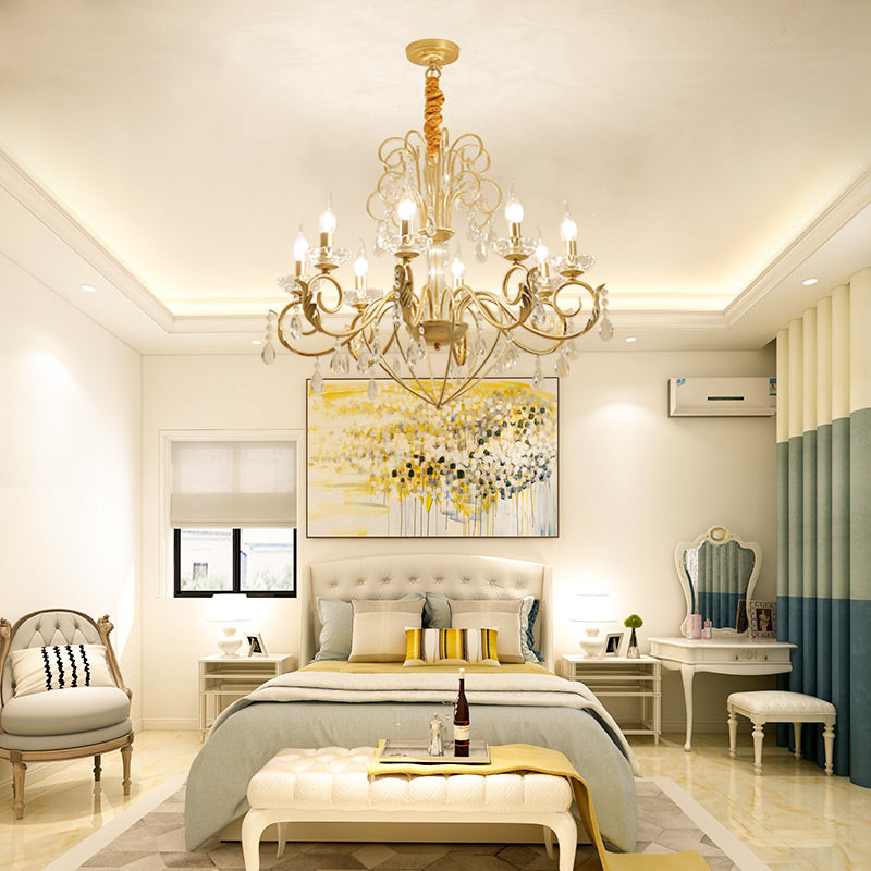 Vintage Style Gold Candle Hanging Lamp With Crystal Accents - Height Adjustable Chandelier Pendant