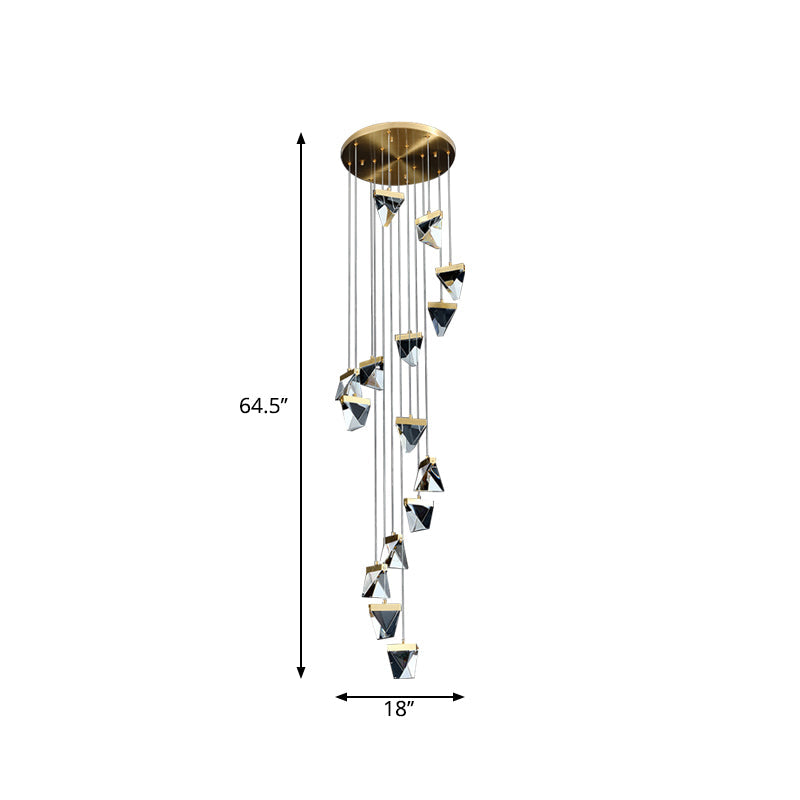 Contemporary Crystal Pendant Light For Stairs: Triangle Spiral Cluster Design 15 / Clear
