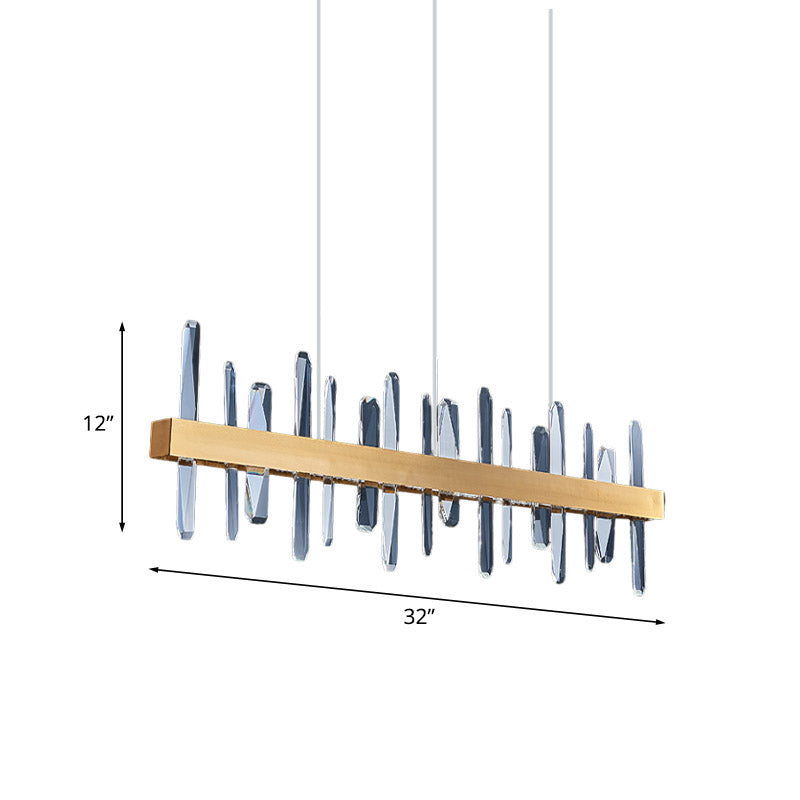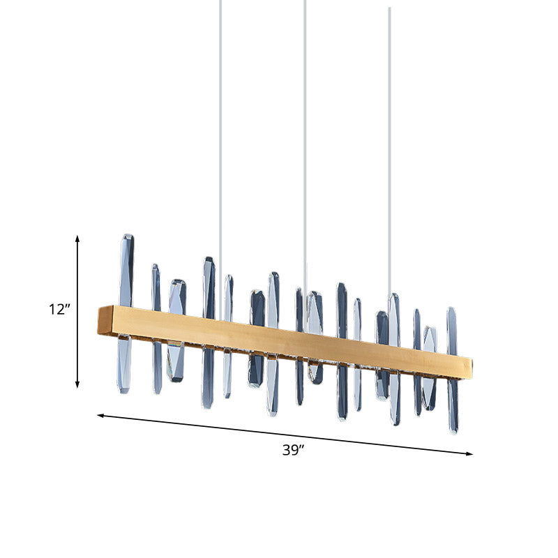Postmoderne LED-Pendelleuchte mit Kristallstäben – goldene lineare Hängeleuchte für den Esstisch, 81,3 cm/99,1 cm breit