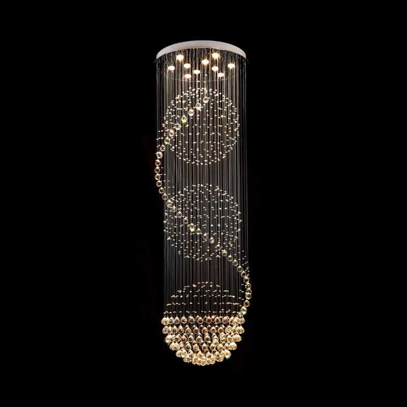 Modern Crystal Ball Pendant - Silver 10-Light Hanging Light For Stairway