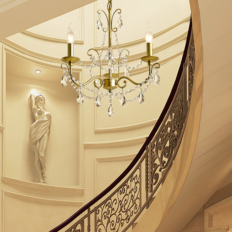 Vintage Bare Bulb Chandelier Pendant Light - Metallic Finish Clear Crystal Gold 3/6 Heads 3 /