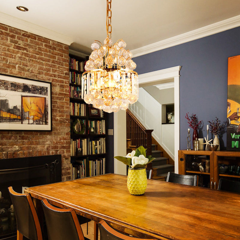 Vintage Style Empire Metal Pendant Chandelier With Crystal Ball Deco In Gold