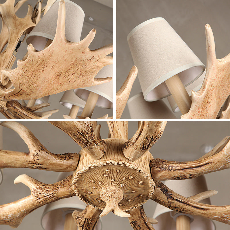Rustikaler konischer Hängeleuchter aus Kunstharz – 8 Lichter in Hellbraun, ideal für das Esszimmer