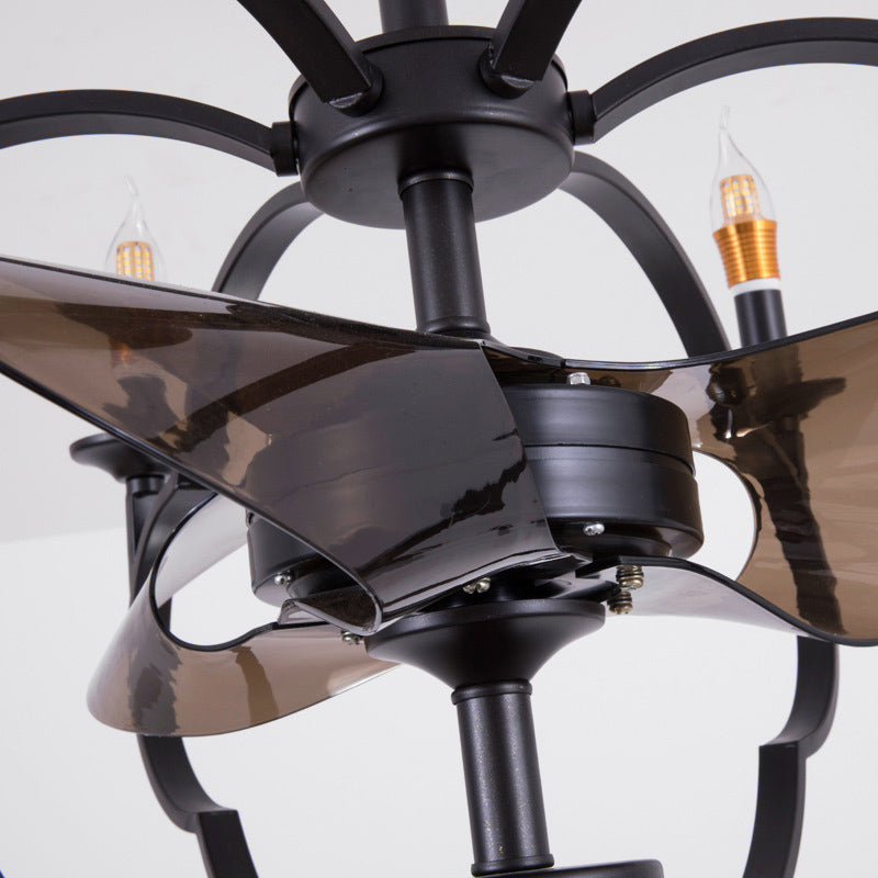 Traditioneller Esszimmer-Kronleuchter aus Metall mit 6 freiliegenden Glühbirnen in Schwarz