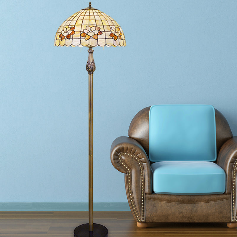 Dieses Produkt mit dem Titel „Shell Beaded Reading Floor Lighting Mediterranean 2 Lights White Floor Light with Grid Dome Shade“ ist eine Stehleuchte mit einem Metallgehäuse in Weiß. Der Schirm besteht aus Glas und ist weiß. Die Lampe ist für zwei E26/E27-Glühbirnen geeignet (nicht im Lieferumfang enthalten). Die Spannung beträgt 220–240 V bzw. 110–120 V.