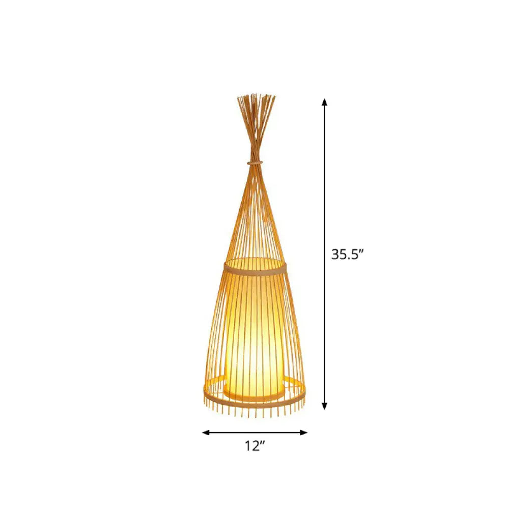 Bambus-Stehlampe aus Südostasien mit konischem Design und zylindrischem Schirm
