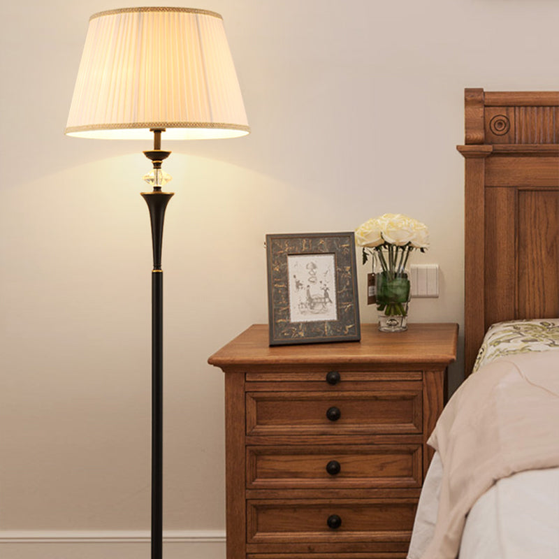 Traditional White Bucket Pleated Fabric Floor Lamp Stand Up Lighting For Living Room