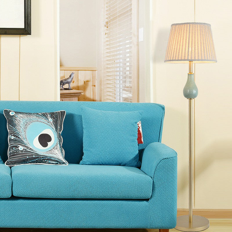 Rustic Empire Shade Floor Lamp - Single-Bulb Fabric Standing Light For Living Room Blue