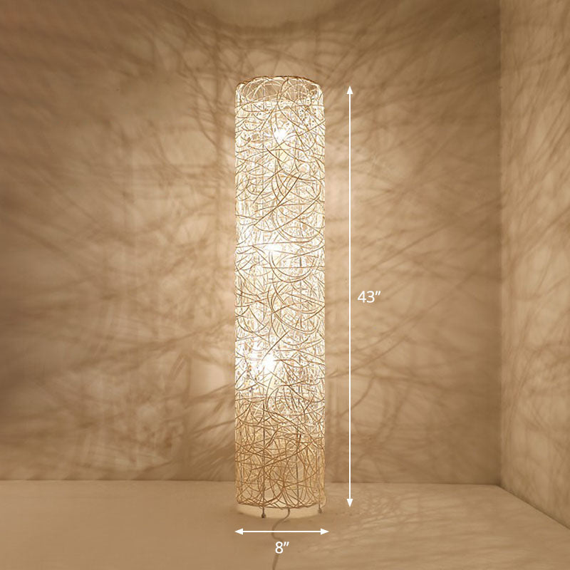 Handcrafted Asian Style Rattan Tea Room Floor Lamp With 3 Shade Heads White / Round