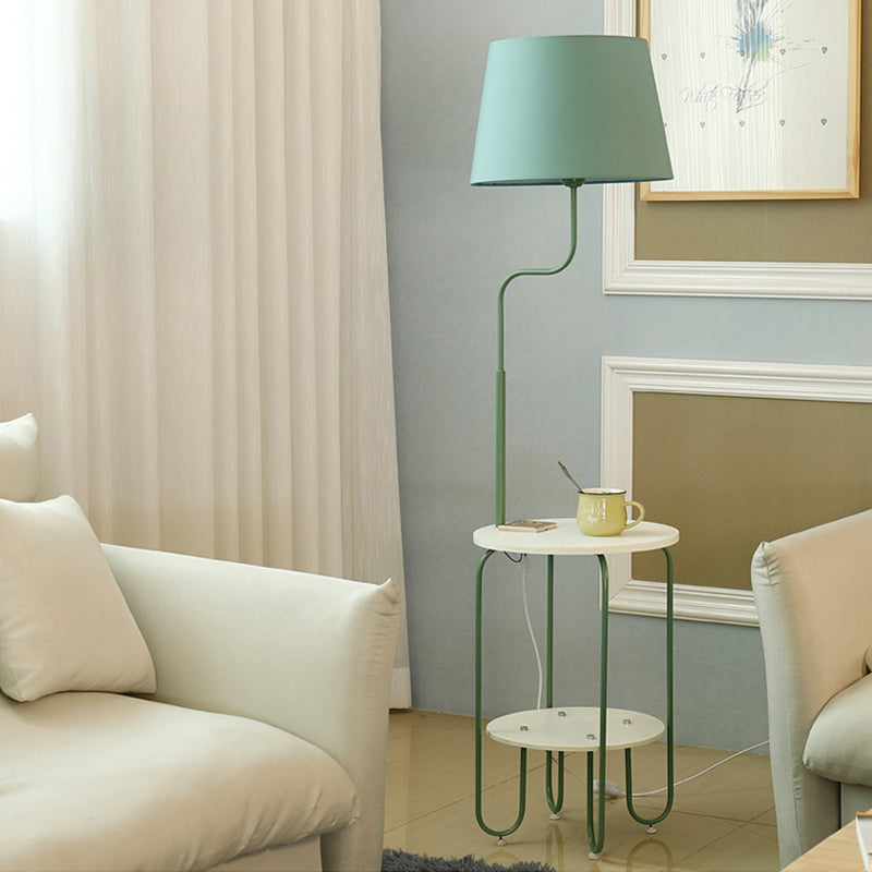 Modernist Drum Standing Fabric Floor Light With Tray - 1 Living Room Lighting Green / A