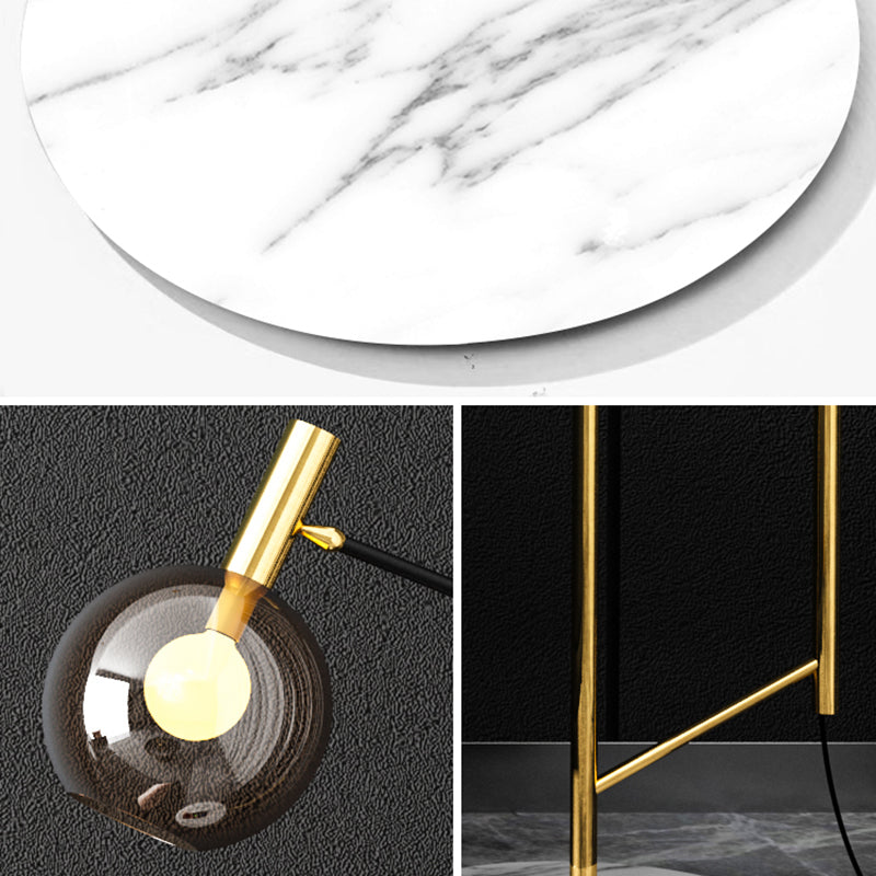 Mid-Century Smoke Grey Glass Sphere Floor Lamp With Rotatable 1-Light And Table White