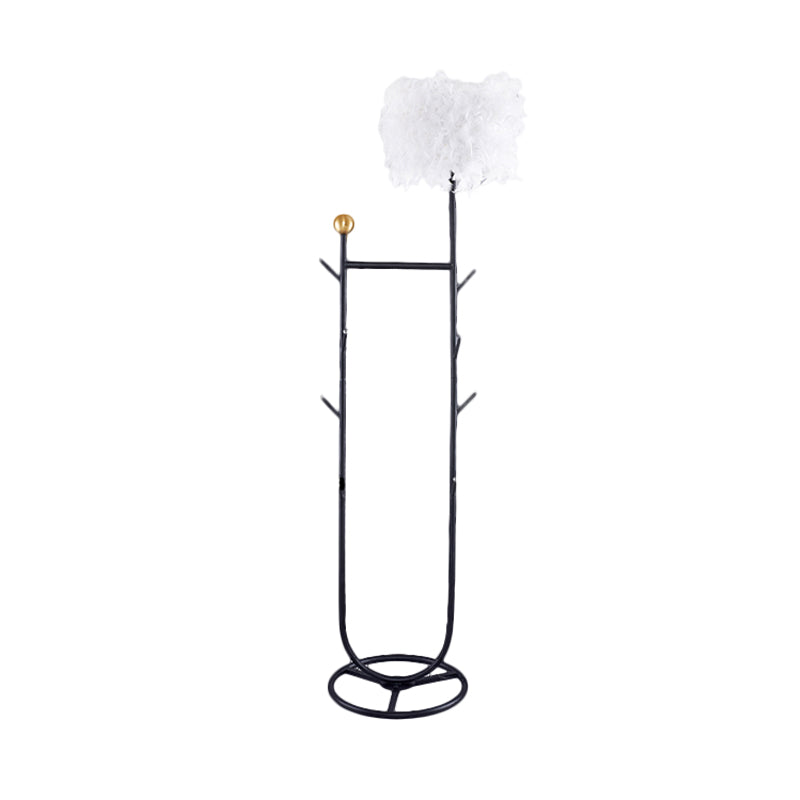 U-Shape Metallic Tree Floor Lamp 1-Light Black/Gold Finish With Feather Shade - Simple And Stylish