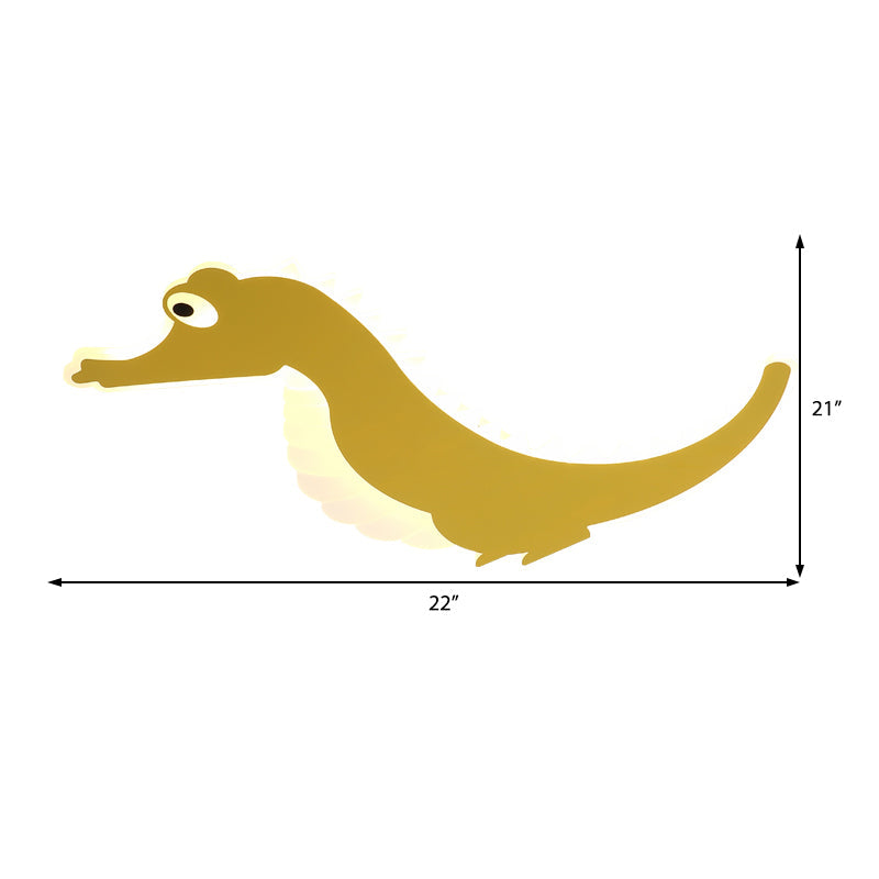 Stylish Sea Horse Led Ceiling Light In Orange/Green With Warm/White Glow