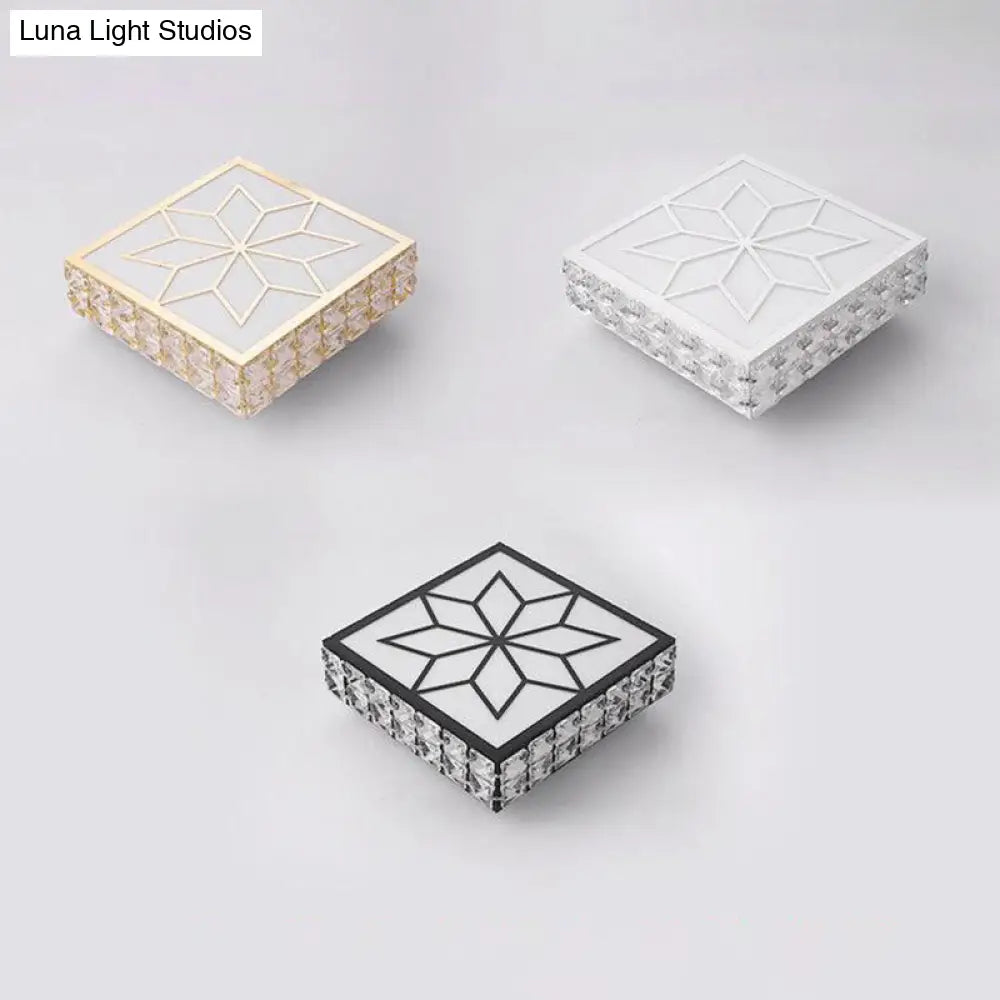 Moderne LED-Deckenleuchte mit Kristalleinsatz in Goldoptik für den Gang