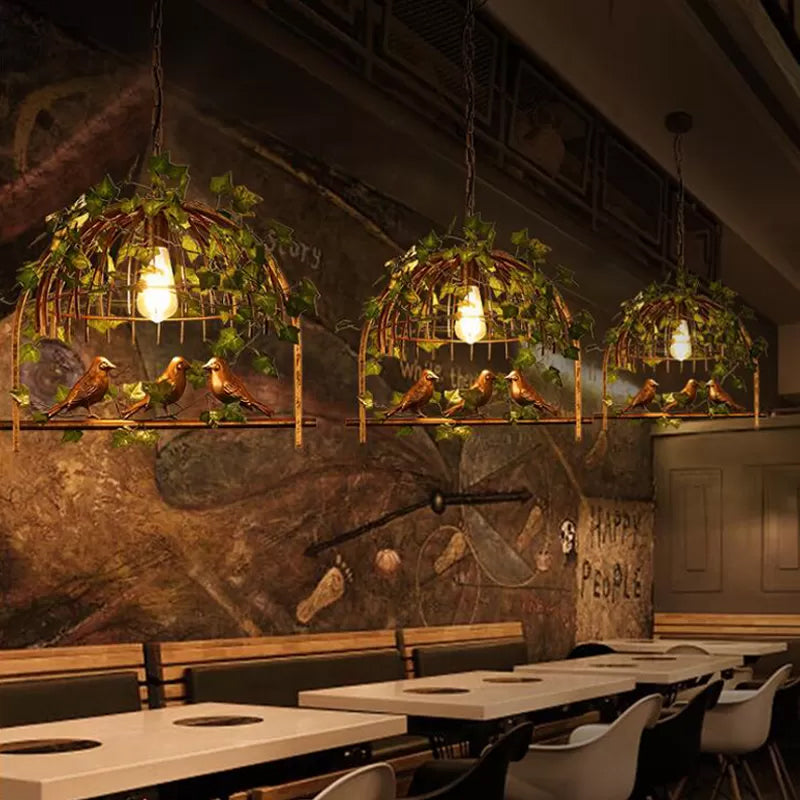 Hängeleuchte im Lodge-Stil im Vogelkäfig-Stil – Eisenanhänger mit kuppelförmigem Schirm in Rost/Schwarz