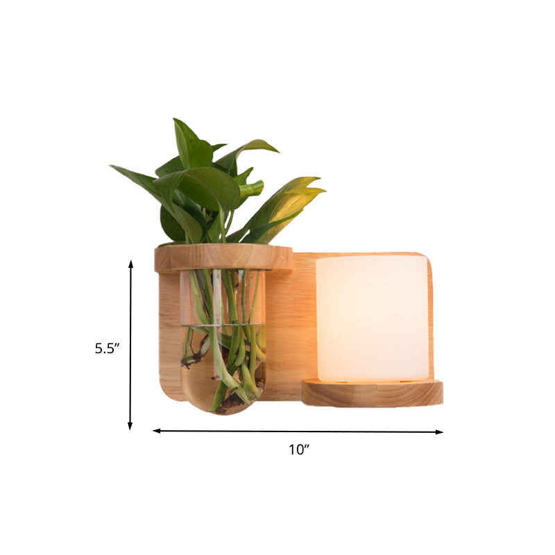 Industrial Wood Opal Glass Led Wall Sconce - 1 Head Barrel/Globe Light Fixture For Living Room