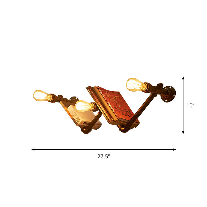 Industrielle Wandleuchte aus dunklem Rostmetall mit W-förmigem Design und 3 Lichtern