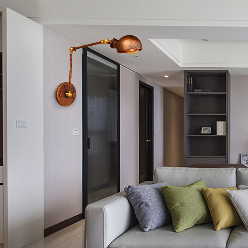 Antique Style Metal Wall Lamp Fixture - Adjustable Sconce Light In Rust With Domed Design 4/6.5