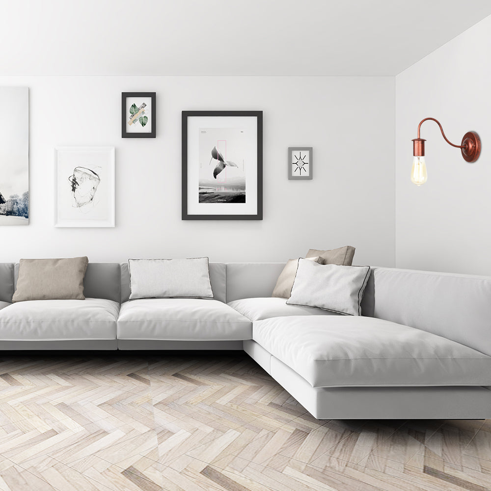 Industrielle Wandleuchte aus Rost mit bloßer Glühbirne – 6"/10" hoch, 1 Kopf, Metall-Wandbeleuchtung mit Schwanenhalsarm für das Wohnzimmer