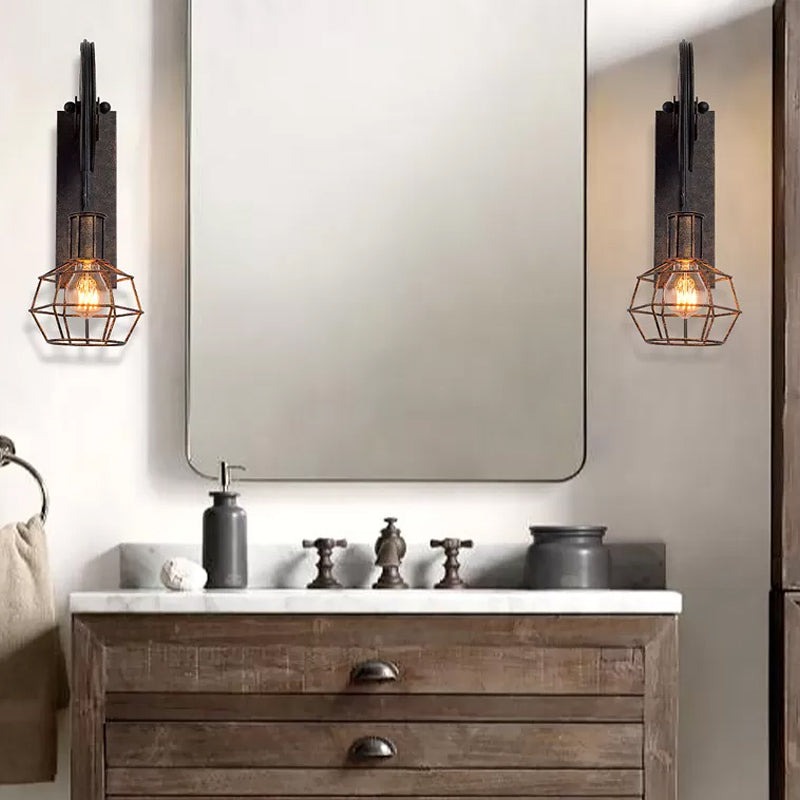 Antike schwarze Wandleuchte mit Einzelrolle – Industrieller Eisendrahtkäfig für Restaurantbeleuchtung