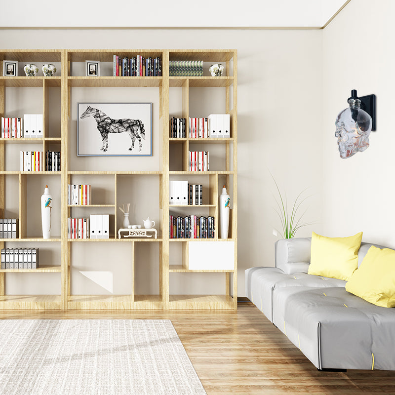Vintage Wandleuchte in Totenkopfform, Schwarz: Klarglas, Wandlampe fürs Wohnzimmer