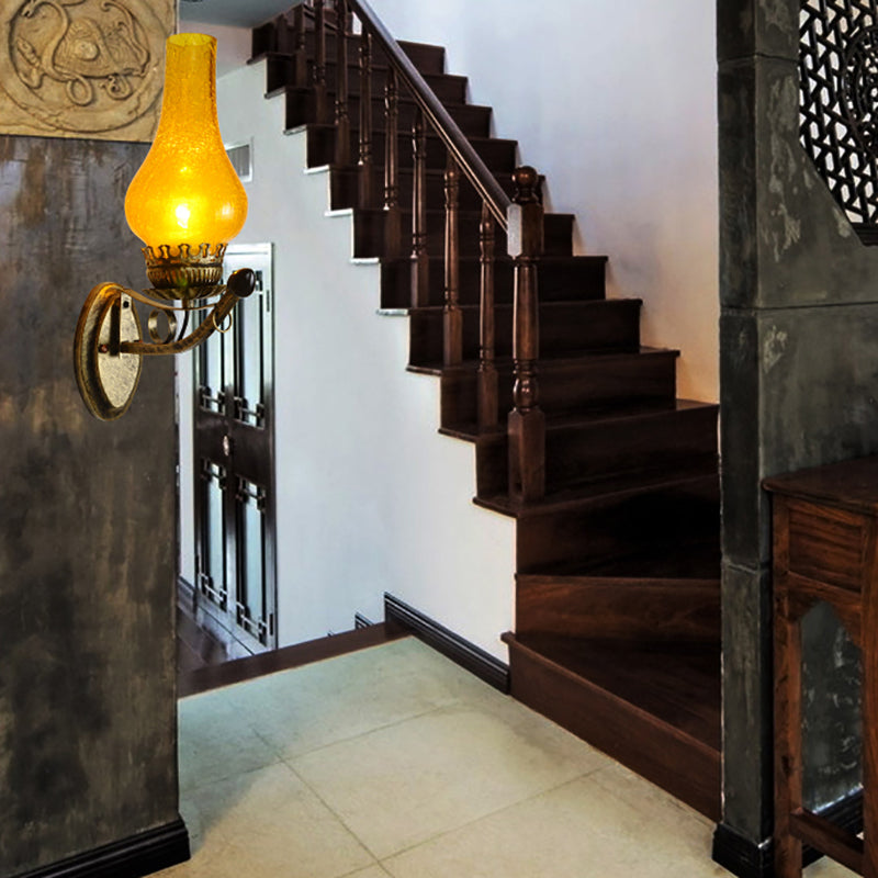 Küstenkerzen-Wandleuchte – Gelbes Craquelé-Glas, Bronze-Finish