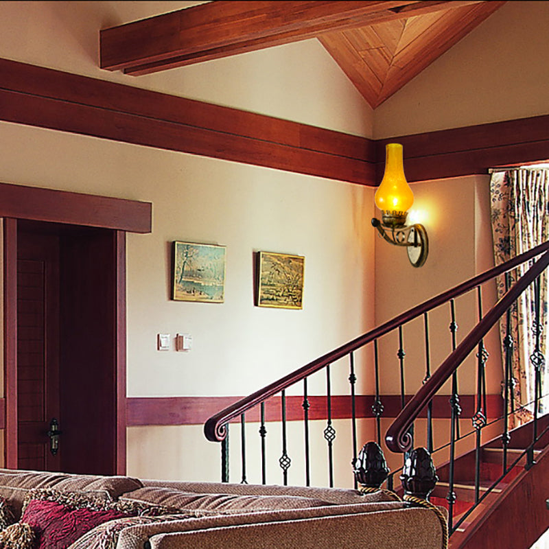 Coastal Candle Wall Sconce Light - Yellow Crackle Glass Bronze Finish