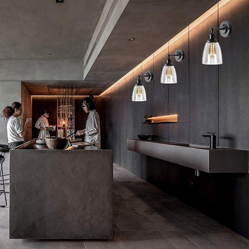 Industrial Clear Glass Black Sconce Lamp For Coffee Shop Walls