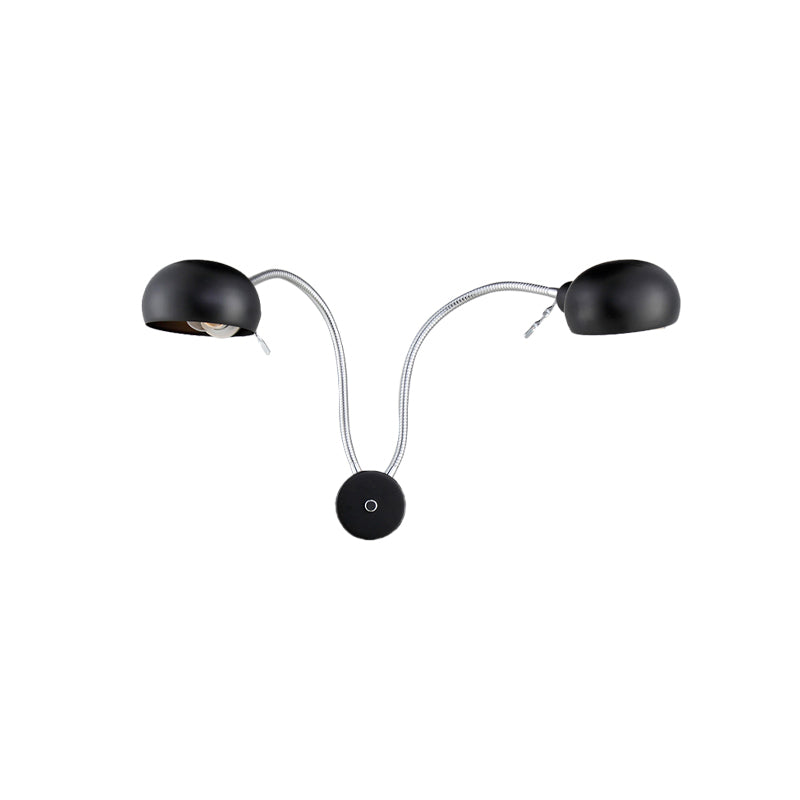 Industrial Style Double Domed Metal Wall Sconce - 2-Light Bedroom Fixture With Flexible Arm