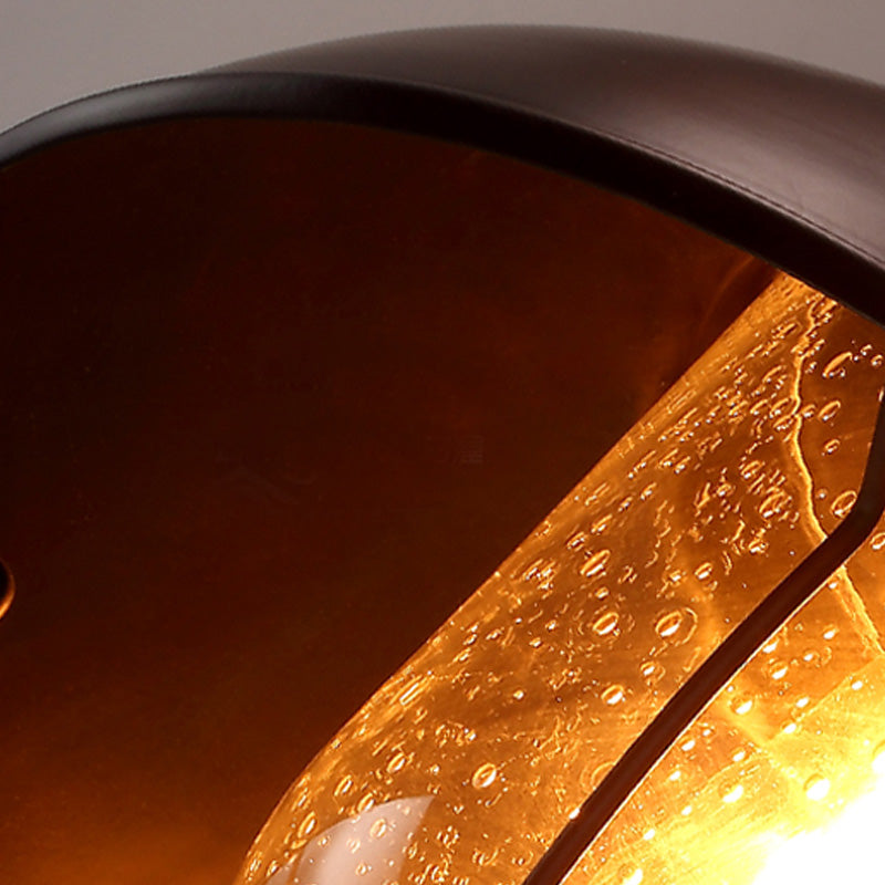 Black Farmhouse Dome Wall Light Fixture With Cage - Seeded Glass Shade 1 Metal Sconce