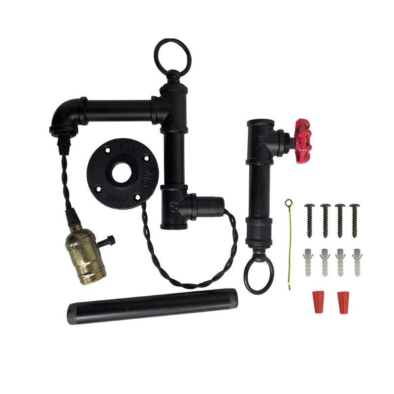 Industrielle Wasserrohr-Wandleuchte mit Ventilgriff