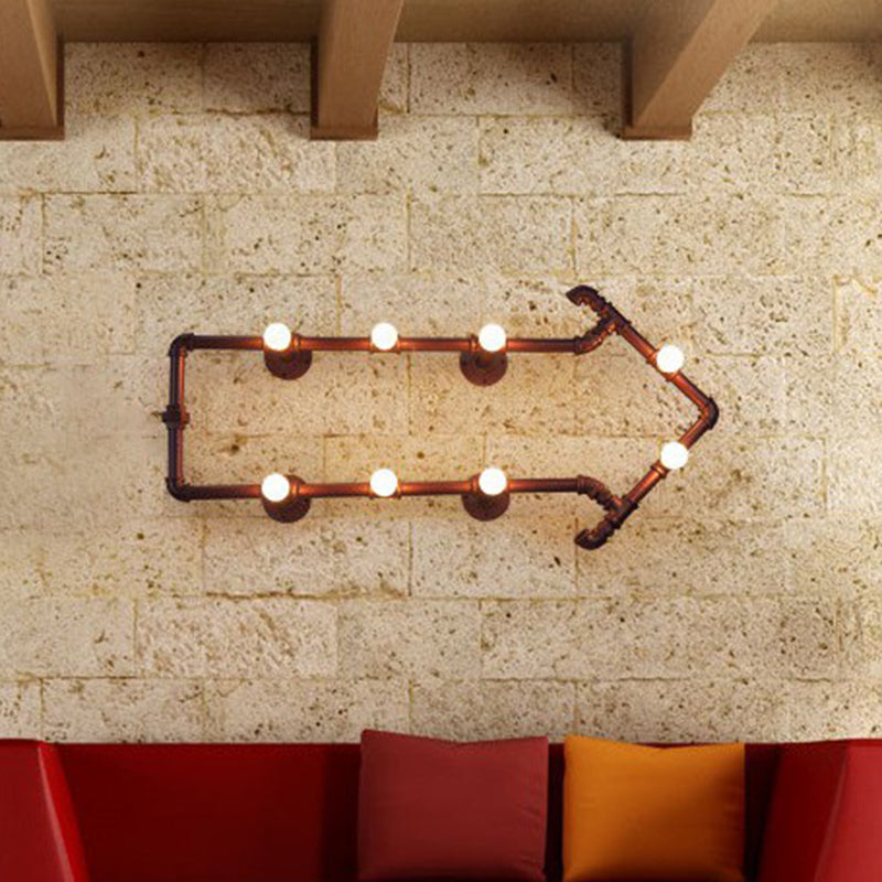 Rustikale pfeilförmige Wandleuchte aus Metall mit 8 Glühbirnen – Industrielle Wandleuchte für Schlafzimmer