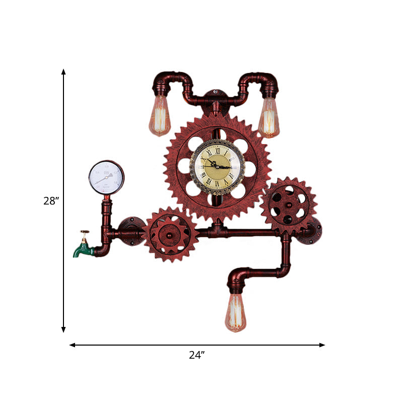 Industrial Rustic Metal Wall Sconce With Pipe And Gear Design 2/3-Light Restaurant Lighting