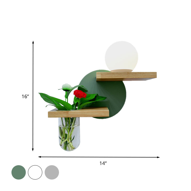 Die Wandleuchte ist aus Holz gefertigt und hat ein schlichtes, kugelförmiges Design. Sie ist in den Farben Grau, Grün und Weiß erhältlich und verfügt über eine LED-Leuchte. Es ist eine schlichte, aber elegante Wandleuchte, die in jedem Raum gut aussieht. Die Leuchte ist 38 bis 48 cm hoch und 35 cm breit. Sie ist direkt verdrahtet und verfügt über eine Stromquelle. Der Schirm besteht aus Glas. Das Leuchtmittel ist nicht im Lieferumfang enthalten, der Sockel ist jedoch E26/E27.