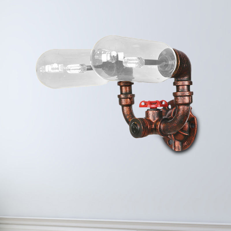 Industrielle Wandleuchte aus verwittertem Kupfer mit 2 Lichtern und ovalem Schirm aus klarem Glas – Wandleuchte