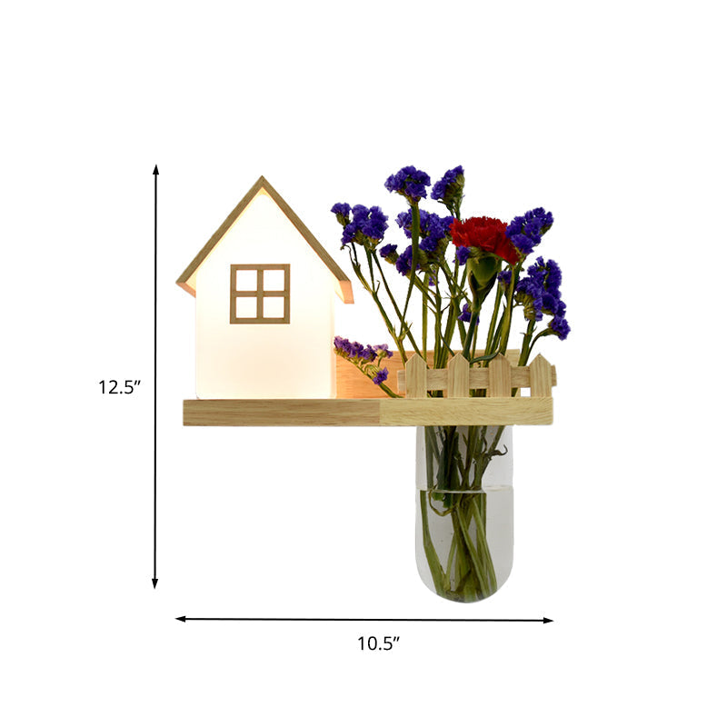 Industrielle cremefarbene LED-Wandleuchte aus Glas für Restaurants, Wandleuchte aus Holz für Häuser – Links/Rechts