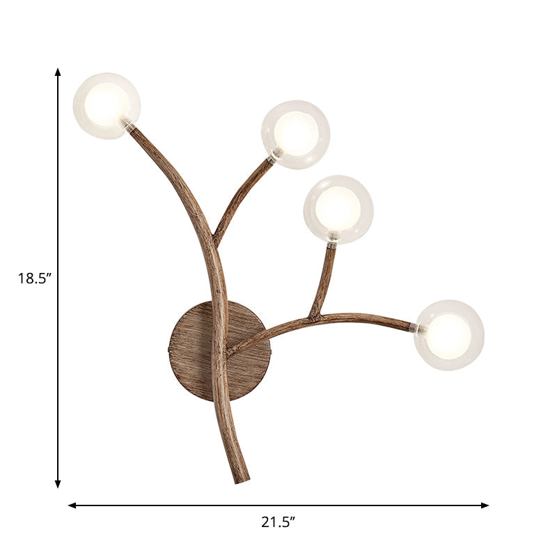 Rustic Wooden Wall Sconce Lighting With Clear Glass Shade - Farmhouse Style 4 / Brown