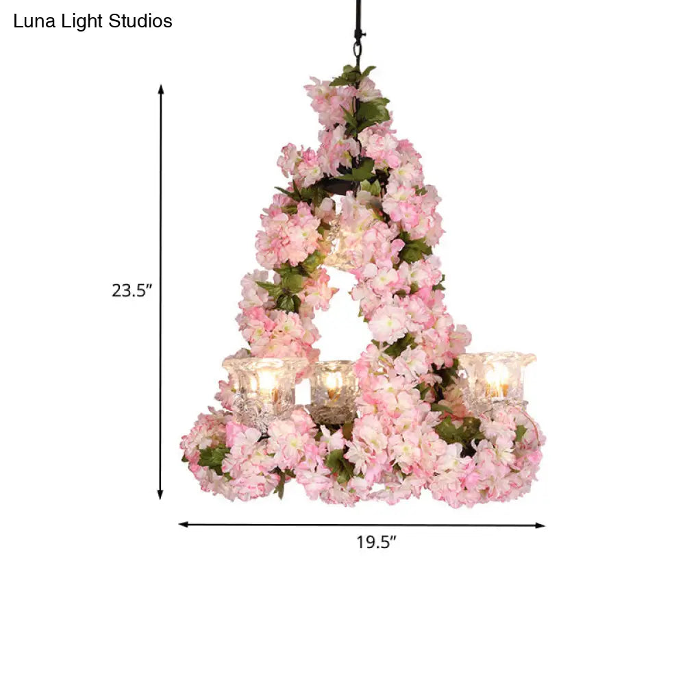 Schwarzer Kronleuchter aus floralem Glas für Restaurant oder Loft